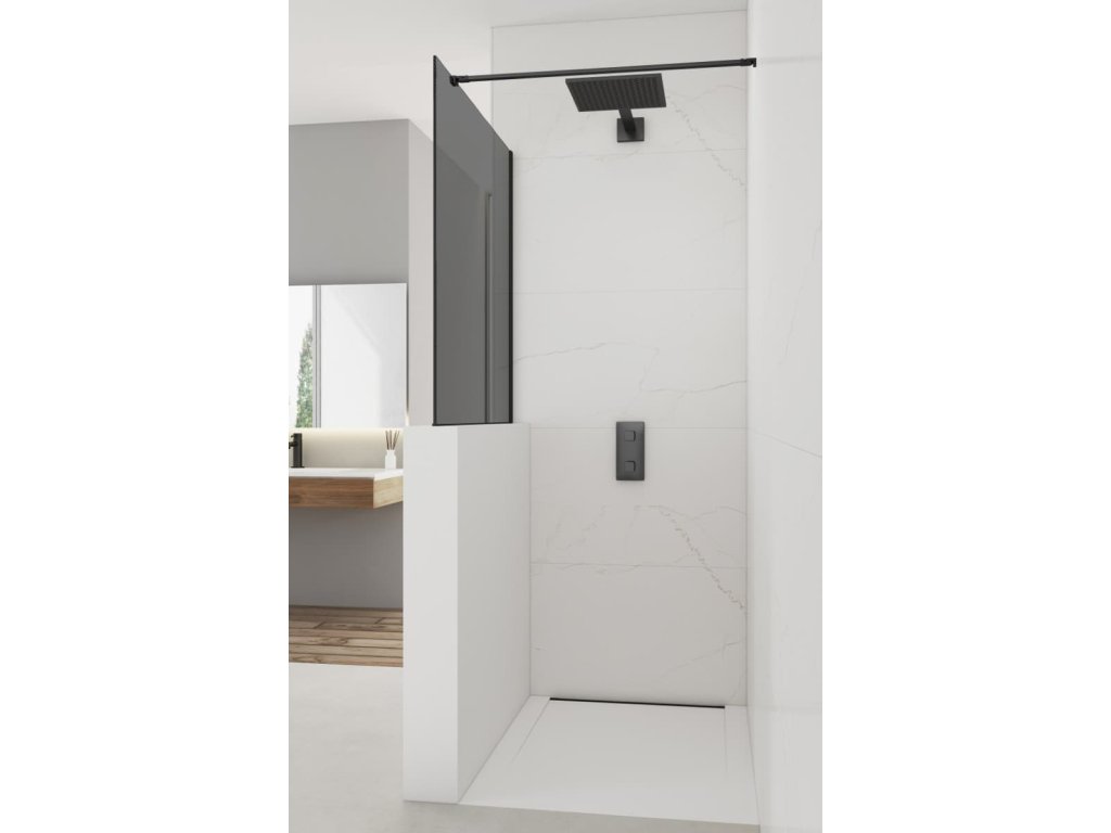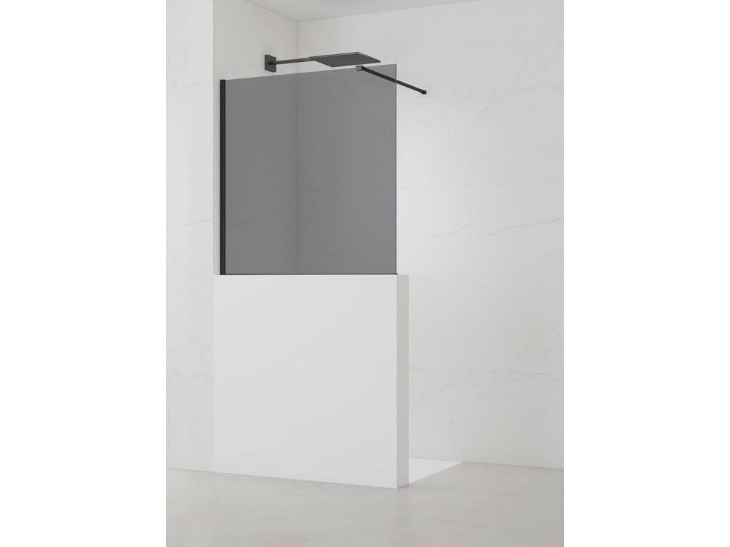 Sprchová zástěna walk-in s profily a zavětrováním v černé barvěa má dekor kouřového efektu a má dekor kouřového efektu. Produkt je opatřen povrchovou úpravou Easy Clean, která usnadňuje čistění a minimalizuje usazování vodního kamene. Nelze otevřít - pevný systém. Určení - levá i pravá orientace. ZÁRUKA 5 LET, dostupnost náhradních dílů 10 LET.Doplňkové parametry