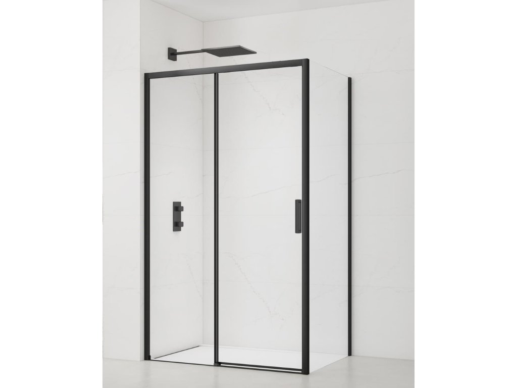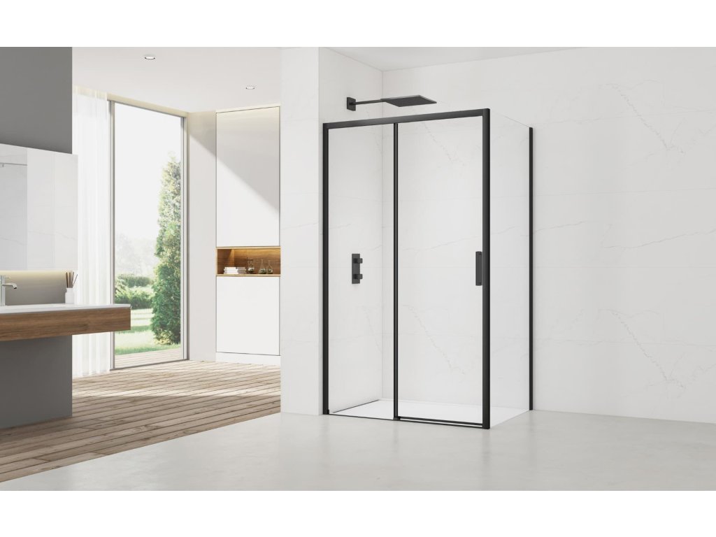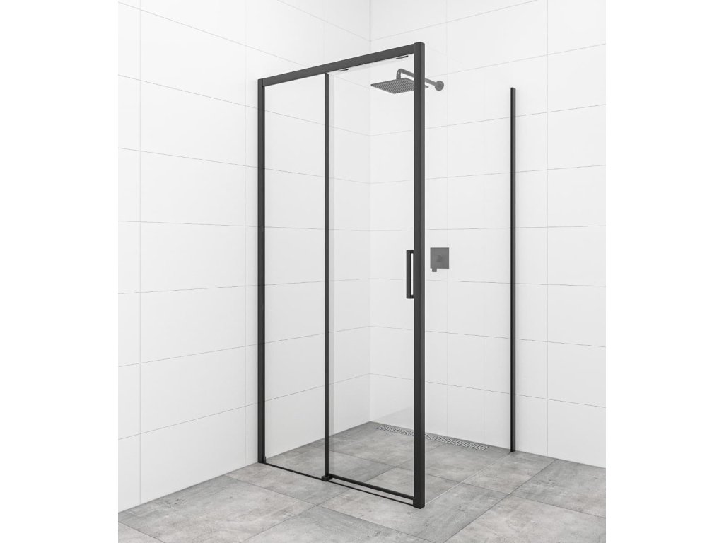 Sprchový kout bez vaničky a barvou profilů v černém matném provedení, výplň je z čirého skla bez dekoru. Produkt je opatřen povrchovou úpravou Easy Clean, která usnadňuje čistění a minimalizuje usazování vodního kamene. Posuvný systém otevírání. Určení - levá i pravá orientace. Z důvodu designu a funkčnosti doporučujeme umístění na dlažbu nebo na vaničky s šířkou hrany min 5 cm. ZÁRUKA 5 LET, dostupnost náhradních dílů 10 LET.Doplňkové parametry