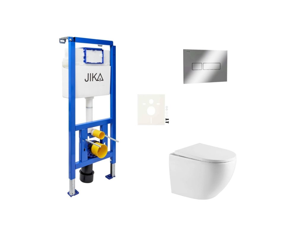 Závěsný wc set - sada obsahuje: WC bez splachovacího okruhu, modul do lehkých stěn / předstěnová, WC nádržku JIKA a WC sedátko. WC prkénko je vyrobeno z materiálu duroplast. Ovládací tlačítko je z materiálu plast a je v barevném provedení chrom lesk. ZÁRUKA 5 LET, dostupnost náhradních dílů 10 LET.Doplňkové parametry