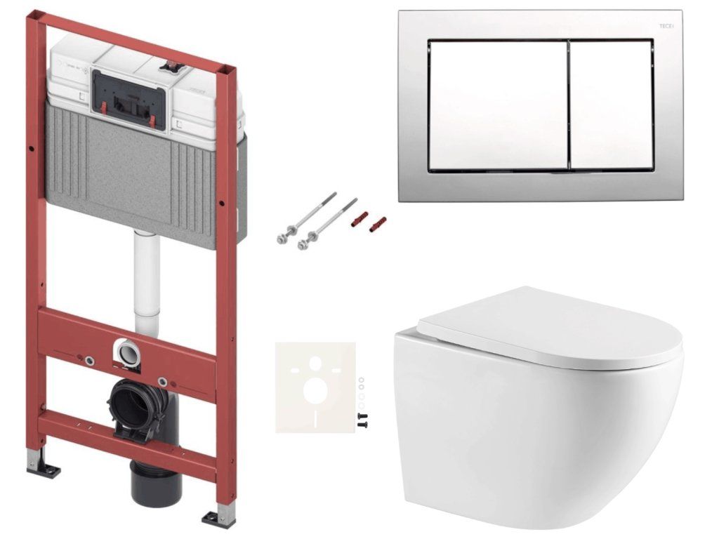 Závěsný WC set - sada obsahuje: WC s vírovým splachováním, modul do lehkých stěn / předstěnová, WC nádržku TECE, ovládací tlačítko TECE nowa, WC sedátko. WC prkénko je vyrobeno z materiálu duroplast. Ovládací tlačítko je z materiálu plast a je v barevném provedení chrom lesk. ZÁRUKA 5 LET, dostupnost náhradních dílů 10 LET.Doplňkové parametry