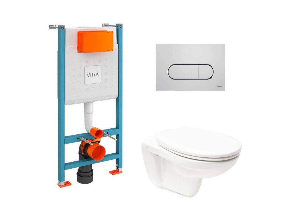 Závěsný wc set - sada obsahuje: modul V-Fix do lehkých stěn / předstěnová, WC nádržku VitrA, ovládací tlačítko Loop Ra, WC sedátko. WC prkénko je vyrobeno z materiálu duroplast. Ovládací tlačítko je z materiálu plast a je v barevném provedení bílá lesklá.Doplňkové parametry