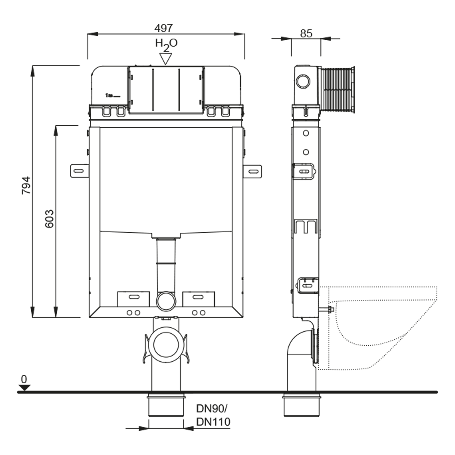 - Pozinkovaný WC prvek s předmontovanou nádržkou