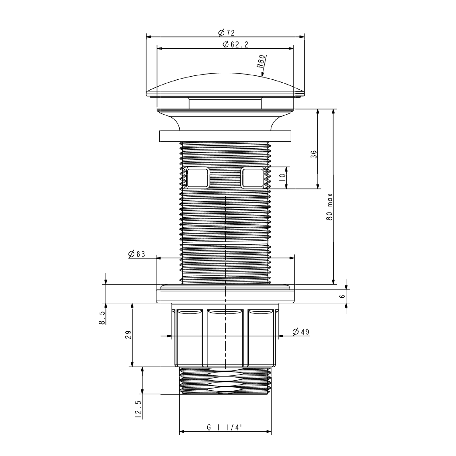 - Výpust může být použita pro všechny tloušťky umyvadel, neboť ji lze jednoduše zkrátit pilkou na požadovanou délku.