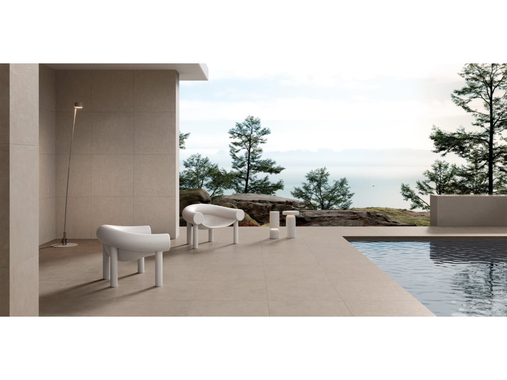Rektifikované. Mrazuvzdorné. Dlažba v barvě taupe a v betonovém designu o rozměru 60x119,8 cm a tloušťce 9 mm s matným povrchem. Vhodné do interiéru i exteriéru. S malými rozdíly v odstínu barev, struktury povrchu a kresby.Doplňkové parametry