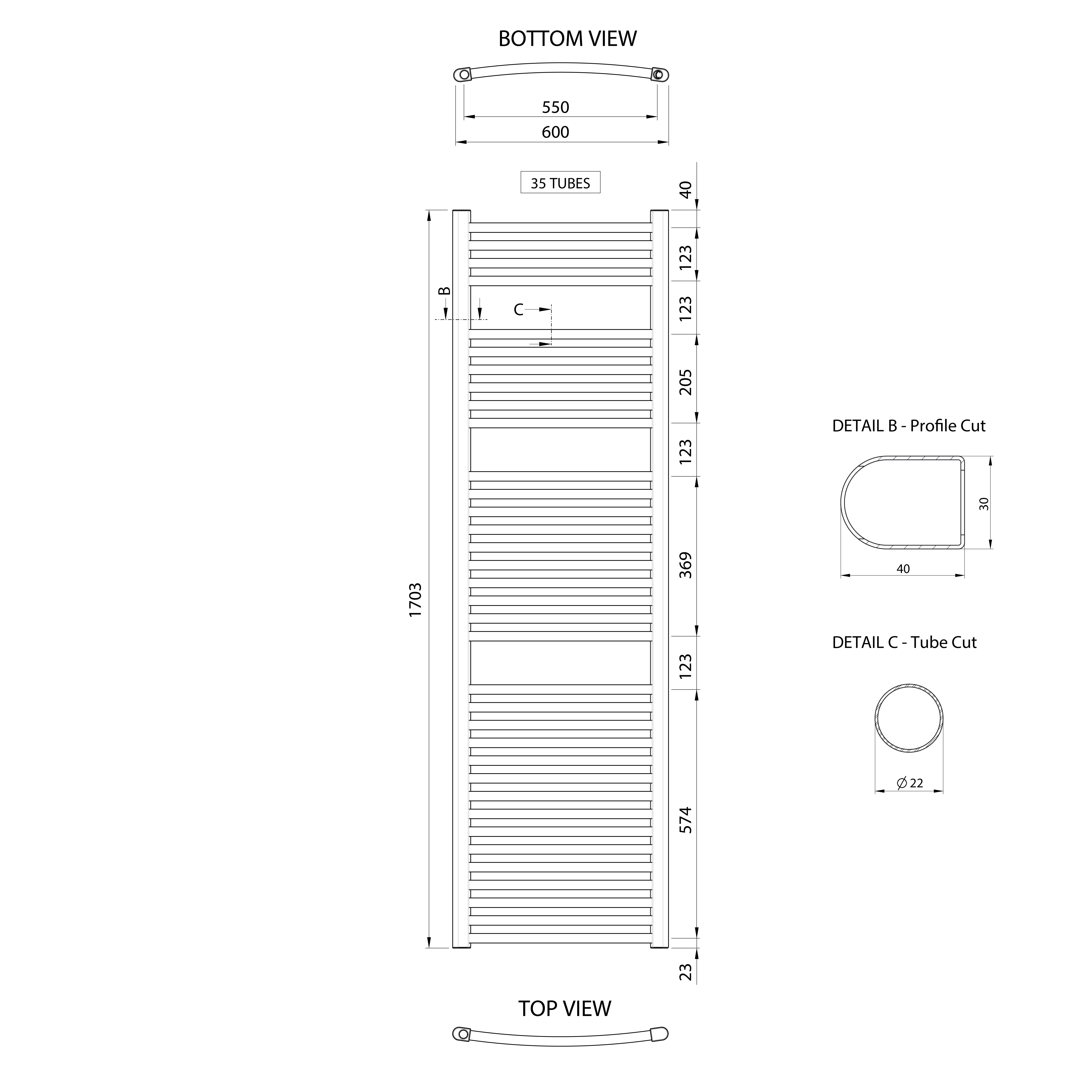 Aqualine ALYA otopné těleso oblé 600x1703mm, chrom LLC205