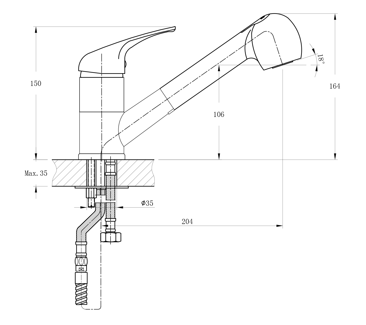 Aqualine AQUALINE 40 stojánková dřezová baterie s výsuvnou sprškou, chrom 52137