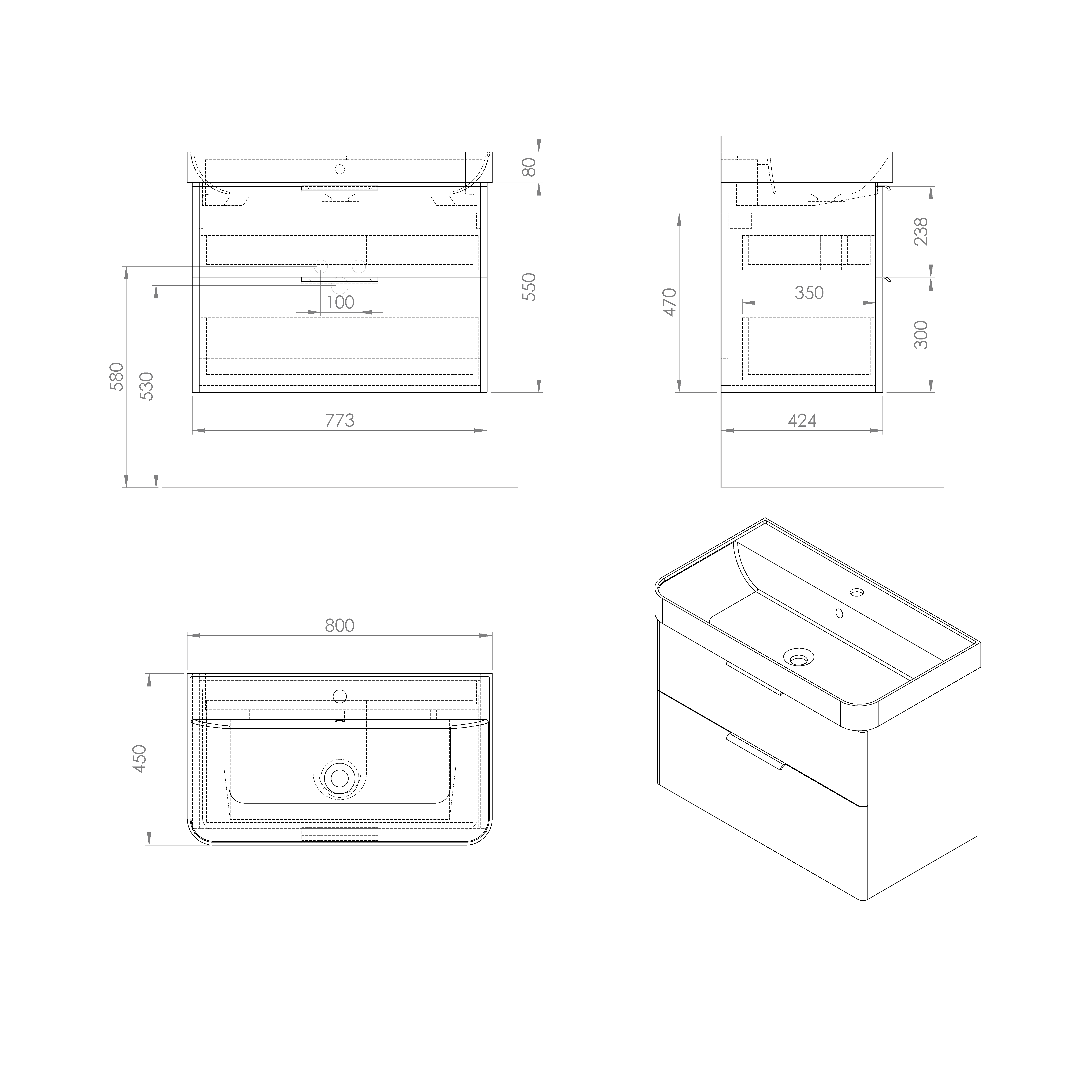 Aqualine DENEB umyvadlová skříňka 77,3x55x42,4cm, bílá mat DN280