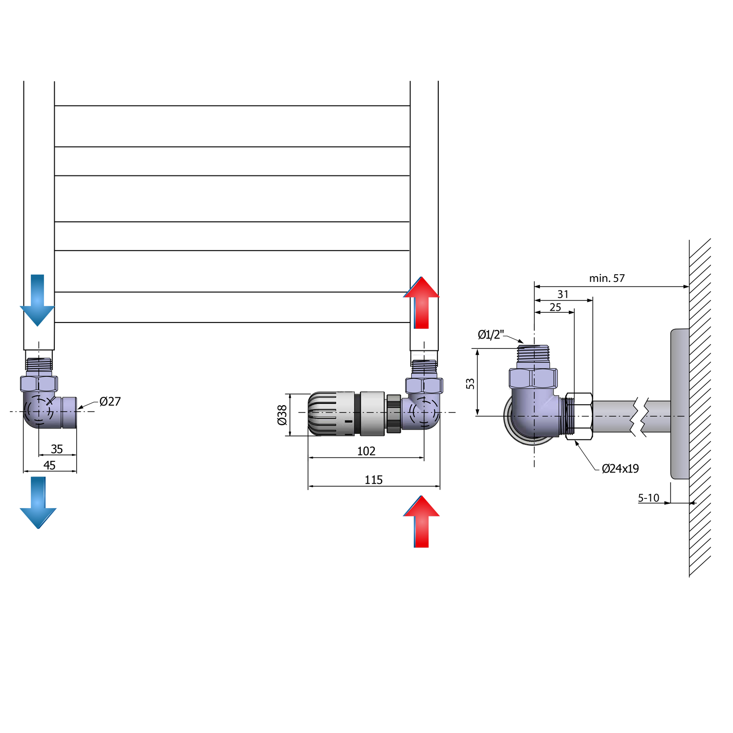 Aqualine ECO připojovací sada termostatická, pravá, nikl/bílá CP9912RS
