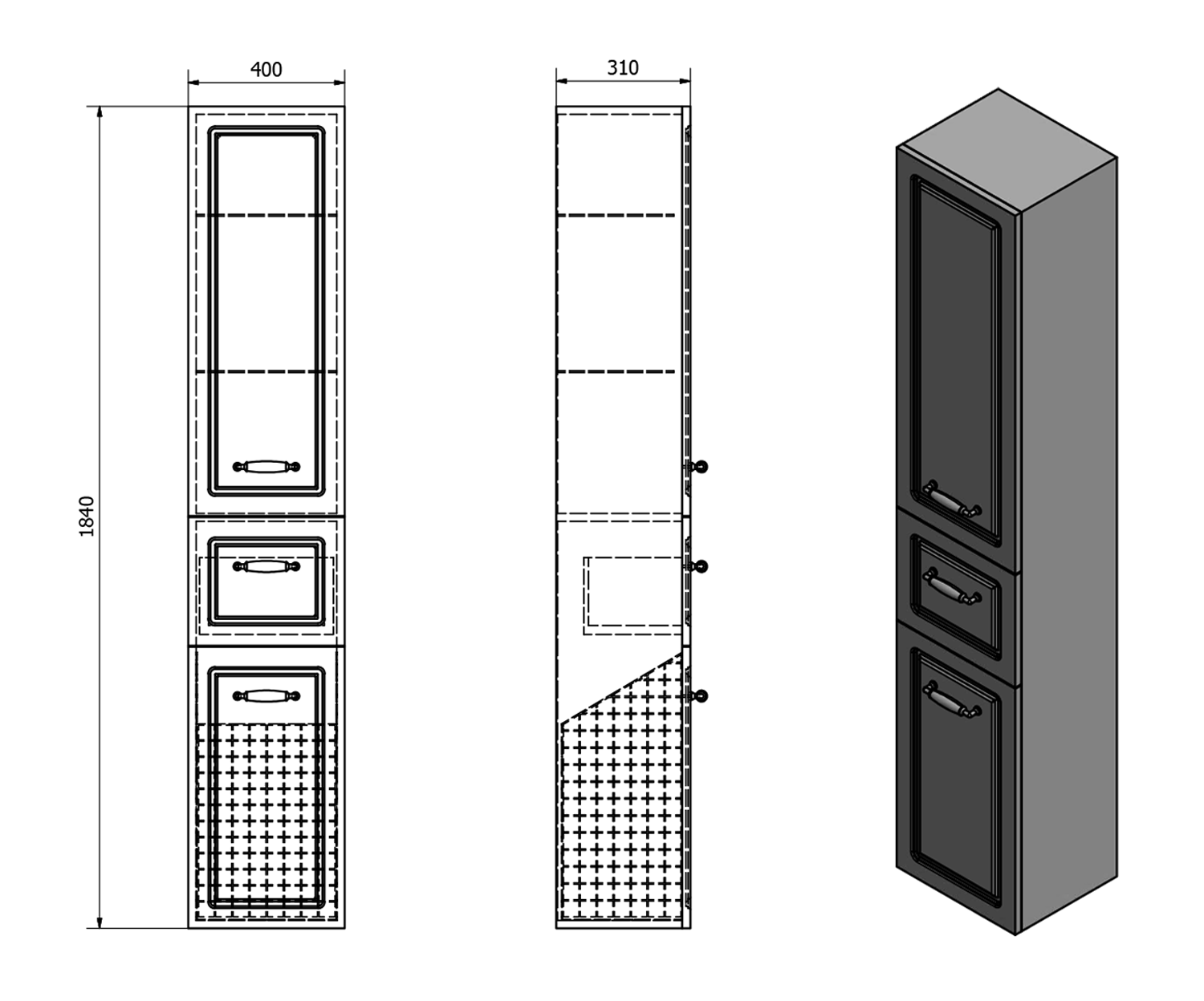 | Typ skříňky: | Zásuvky a dvířka |