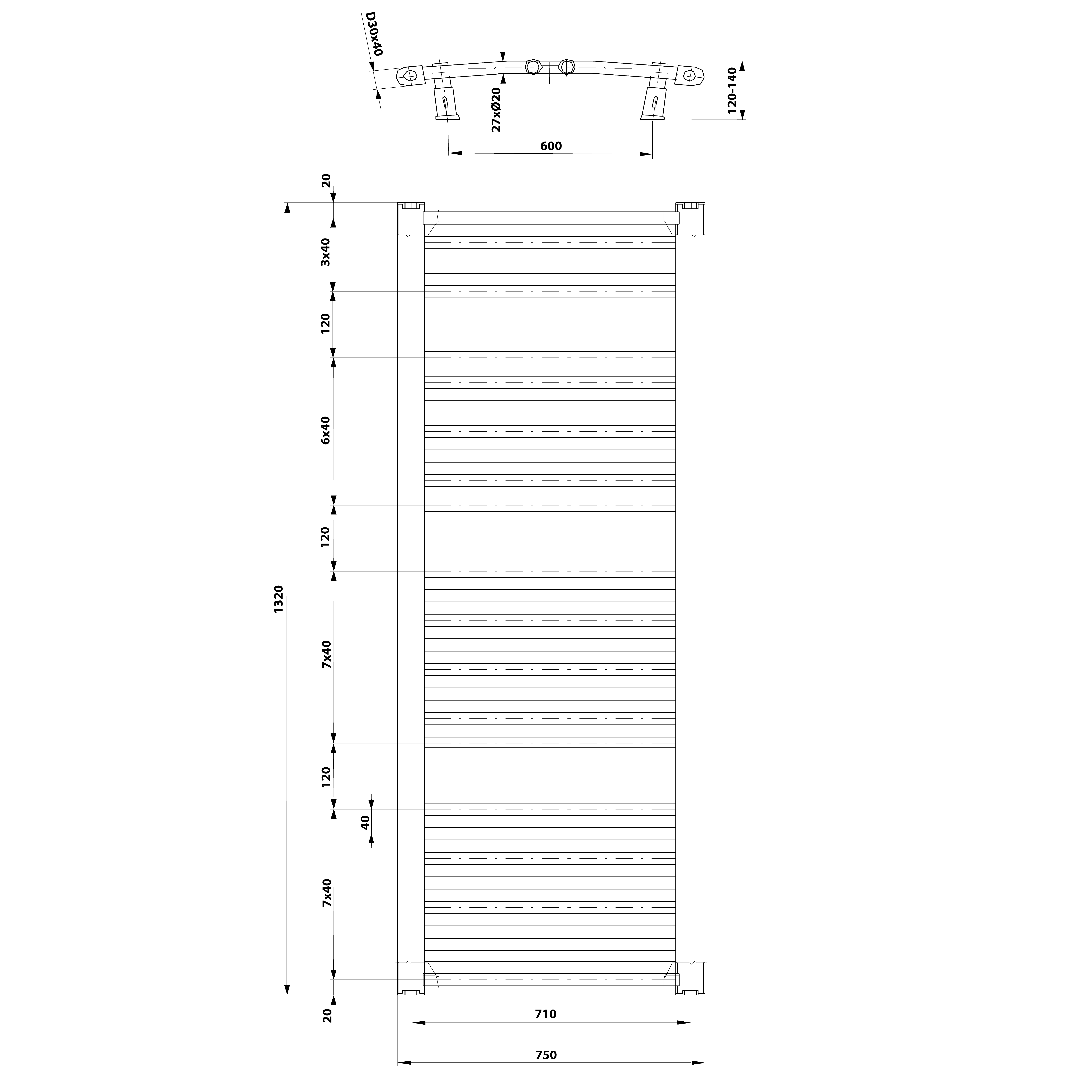 Aqualine ORBIT otopné těleso s bočním připojením 750x1320 mm, bílá ILO37T
