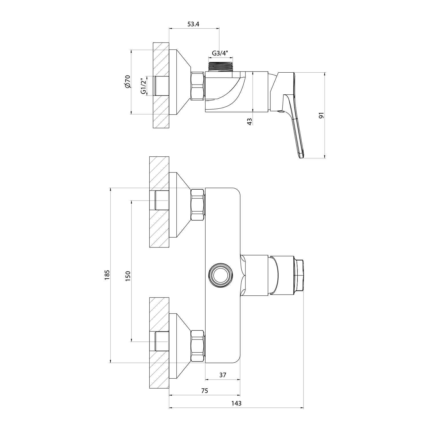| Instalace: | Nástěnná 150 mm |