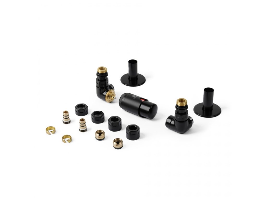 DK Terma VISION ALL IN ONE pravá tříosá termostatická sada ventilů RAL 9005 Pololesk
