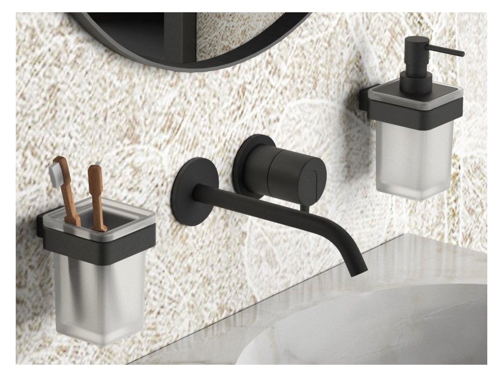Gedy SAMOA dávkovač mýdla 170ml, mléčné sklo, černá mat A88114