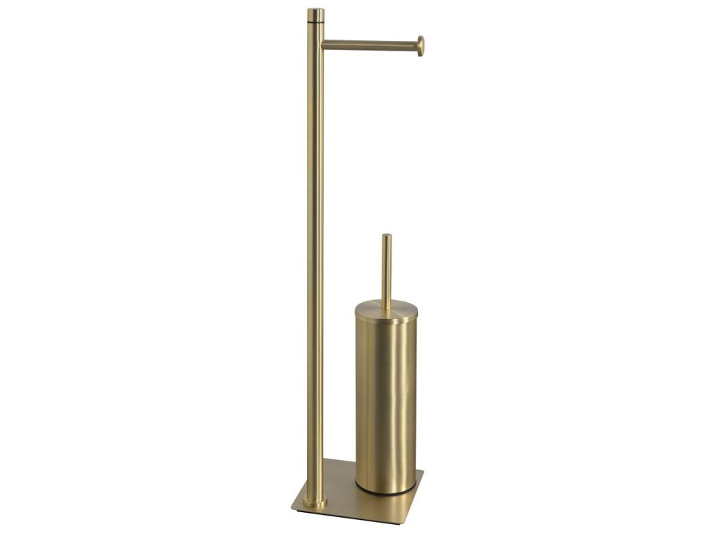 Gedy TRILLY stojan s držákem na toaletní papír a WC štětkou, hranatý, zlato mat TR3288