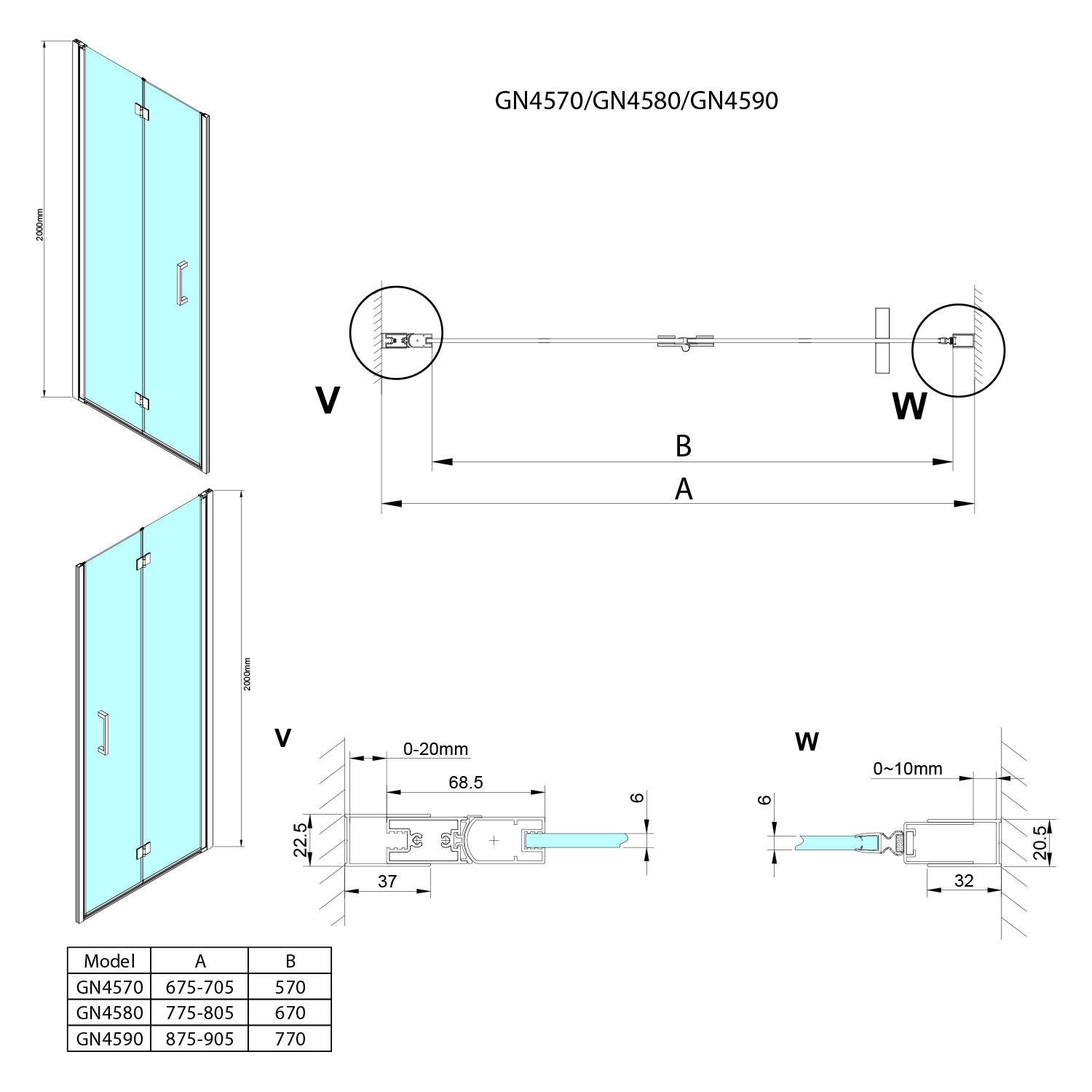 - Dveře skládací 700 - 900 mm umožňují složení ke stěně a úsporu místa v koupelně
