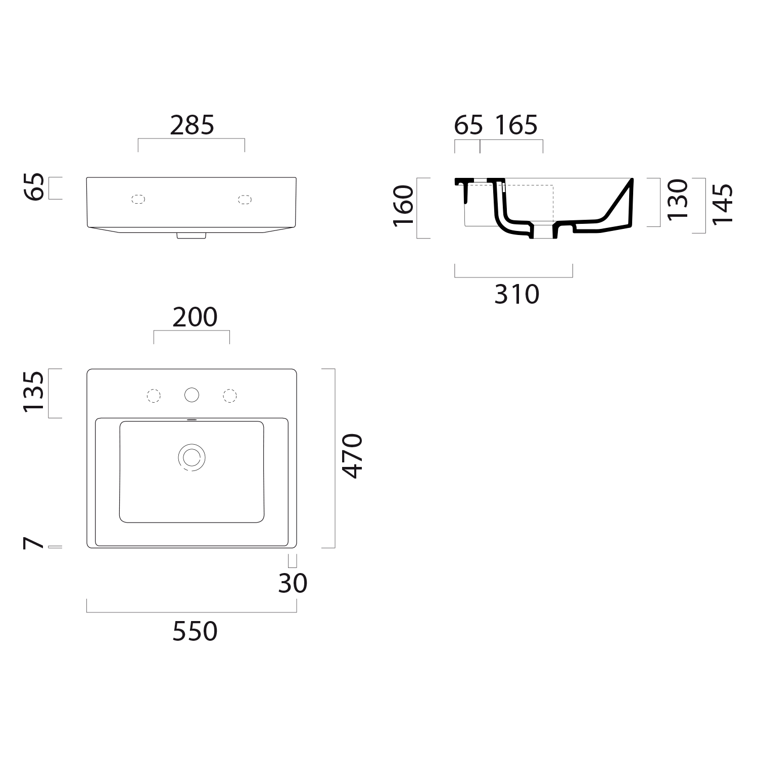 GSI KUBE X keramické umyvadlo polozápustné 55x47cm, 3 otvory, bílá ExtraGlaze 9434311