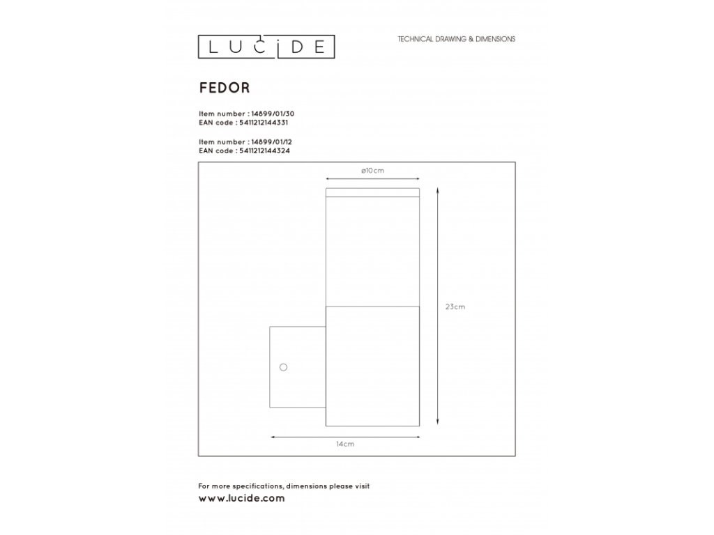 Stylové bydlení začíná za vašimi domovními dveřmi. S Fedorem okamžitě uděláte vkusné prohlášení pro vaši návštěvu. Ještě než zazvoní. Toto nástěnné svítidlo bylo vyvinuto speciálně pro venkovní použití. Díky silným materiálům, jako je matný chrom a přizpůsobené technologii, je Fedor odolný a spolehlivý i v drsných povětrnostních podmínkách. Držák je zakončen průhlednou trubicí, ve které je vidět zdroj světla. U vchodových dveří nebo na venkovní stěně vaší terasy? S Fedorem zabodujete především v kombinaci s žárovkou.Dodatočné parametre
