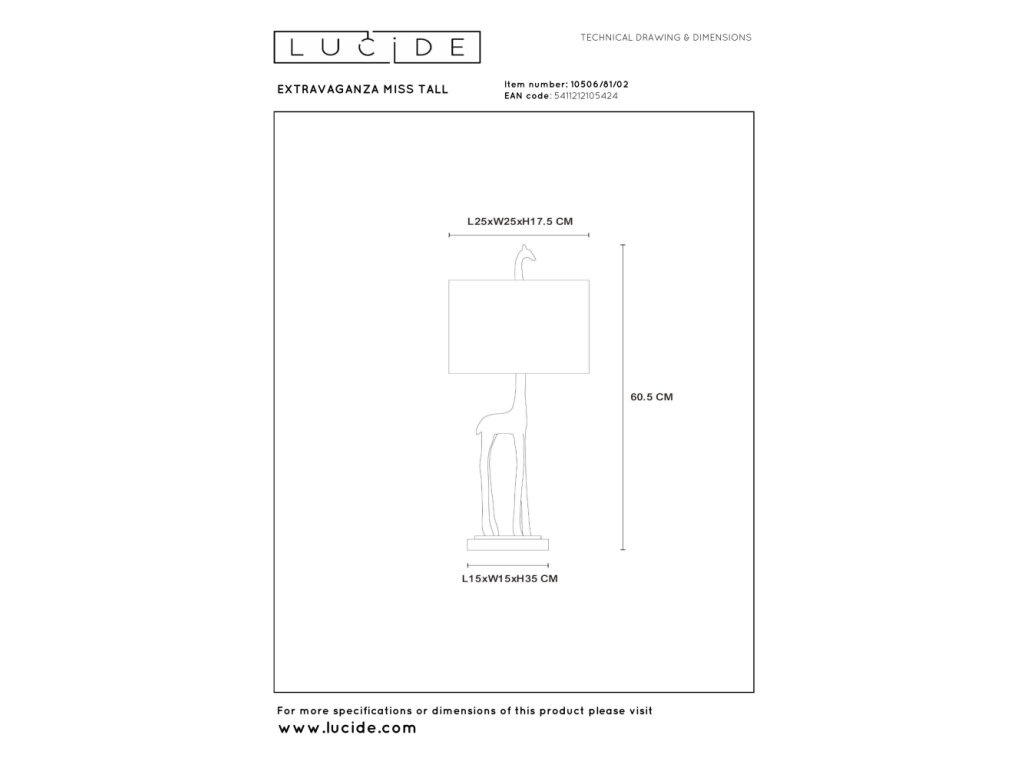 Lucide MISS TALL stolní lampička E27/60W zlatá