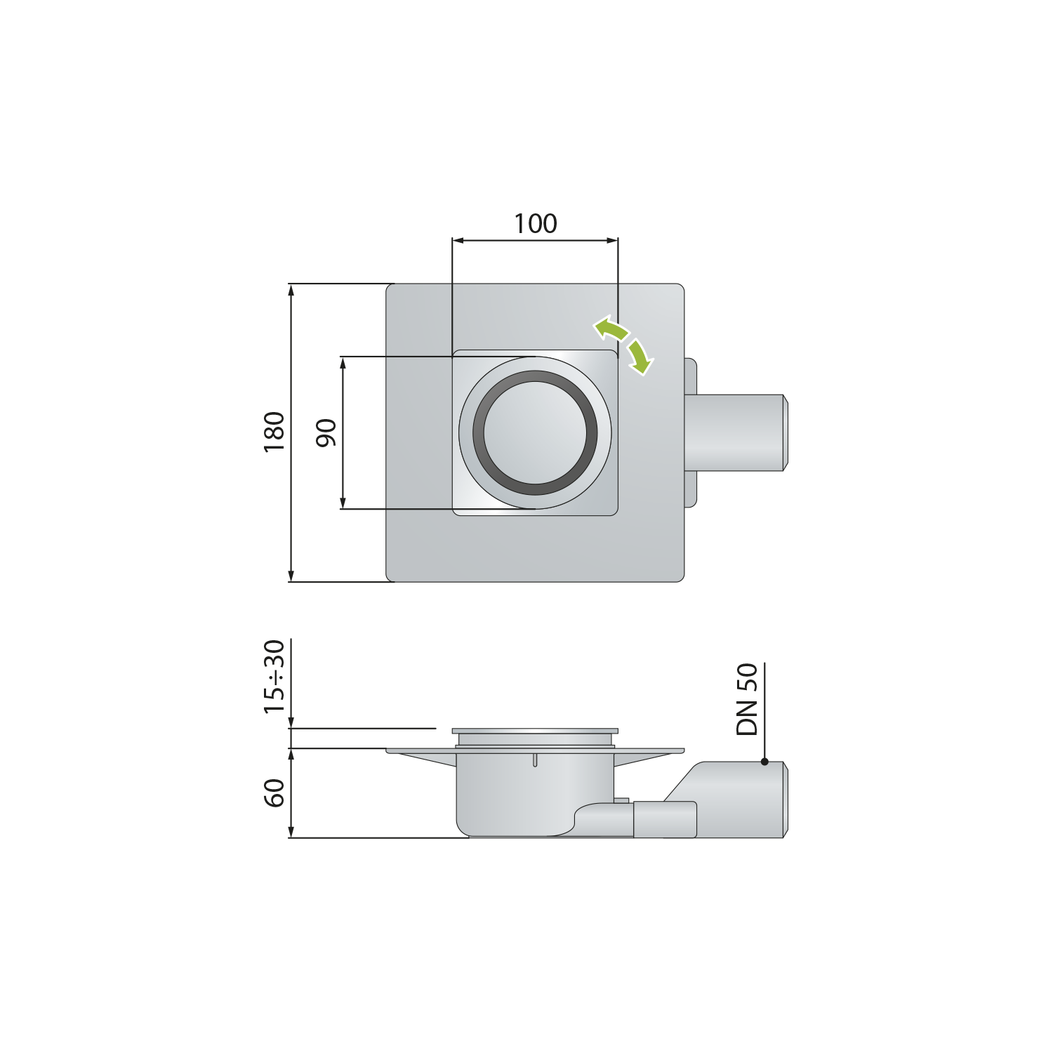 Omp Tea TIRANA podlahová vpust boční 100x100mm, DN50, chrom 2665.295.8