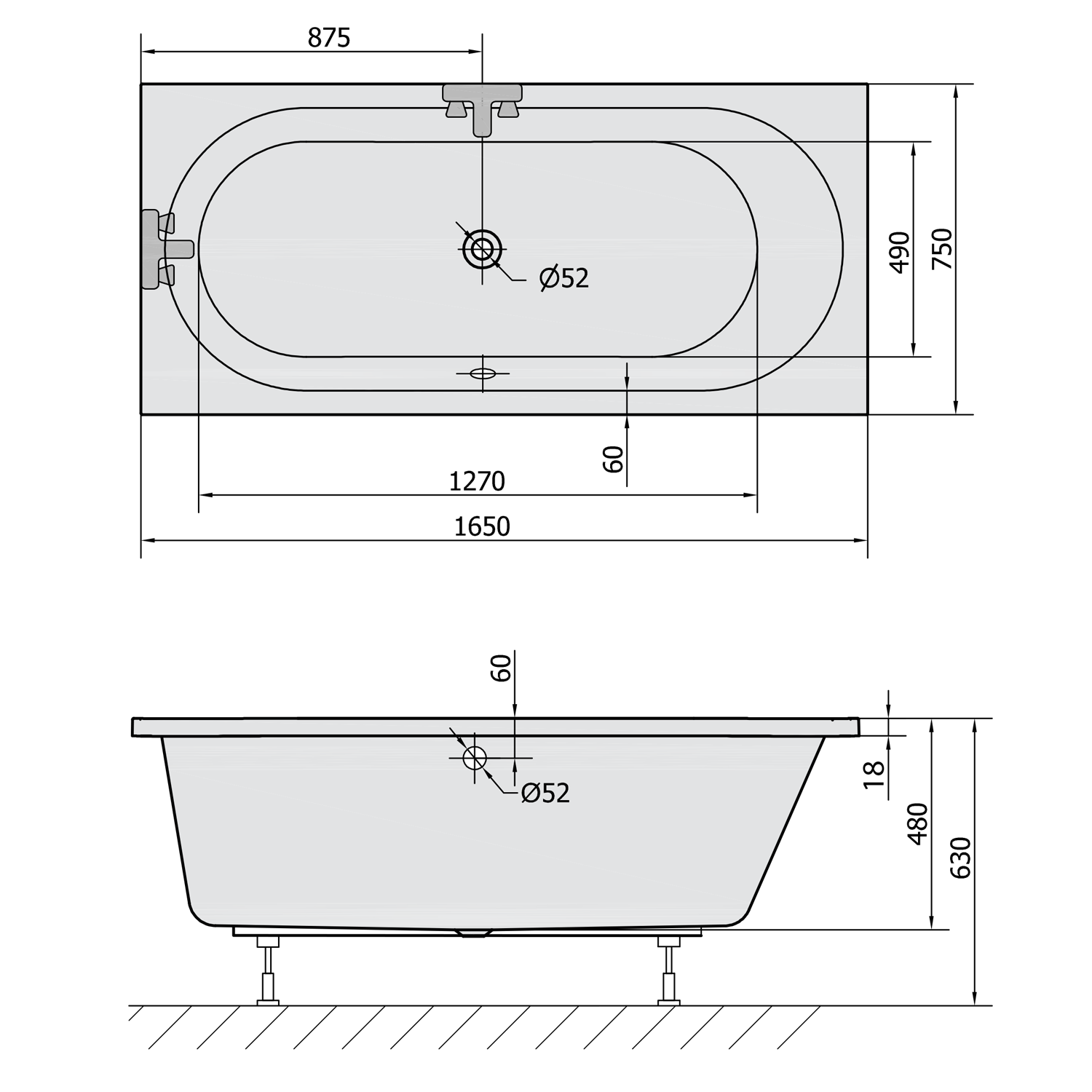 Polysan ASTRA B SLIM obdélníková vana 165x75x48cm, bílá 32611S
