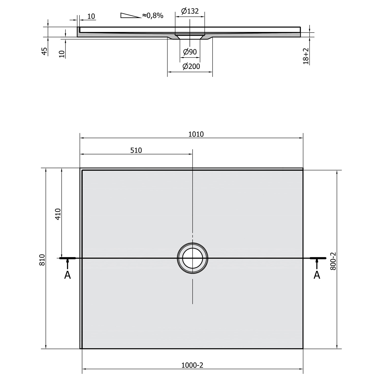 - Drážky na spodní straně umožňují vaničku nalepit přímo na podlahu. Díky nízké výšce 18 mm lze dlažbu nalepit do stejné roviny s vaničkou.