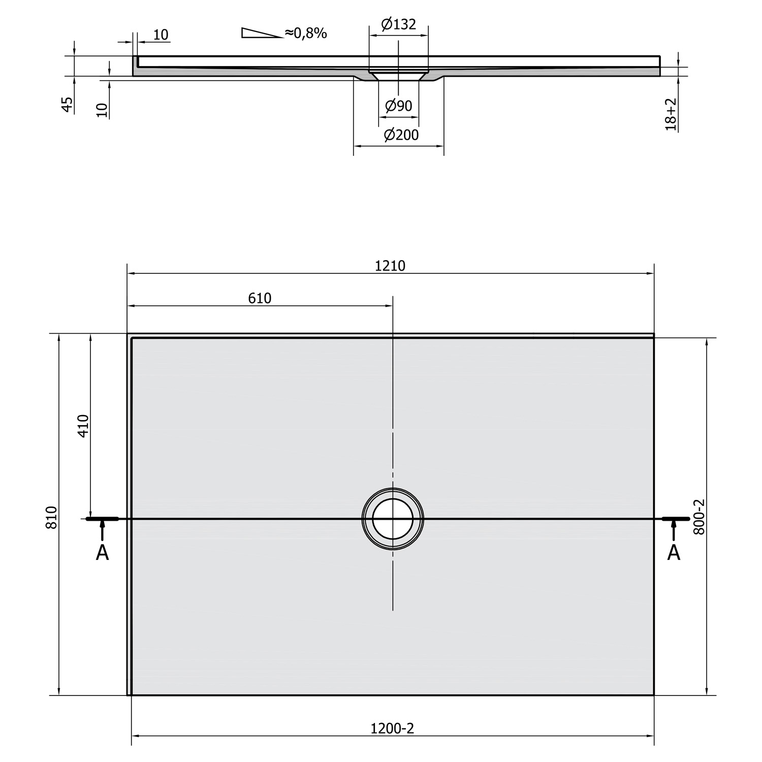 - Drážky na spodní straně umožňují vaničku nalepit přímo na podlahu. Díky nízké výšce 18 mm lze dlažbu nalepit do stejné roviny s vaničkou.