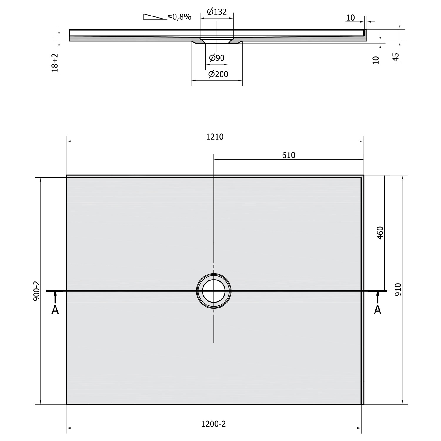 - Drážky na spodní straně umožňují vaničku nalepit přímo na podlahu. Díky nízké výšce 18 mm lze dlažbu nalepit do stejné roviny s vaničkou.