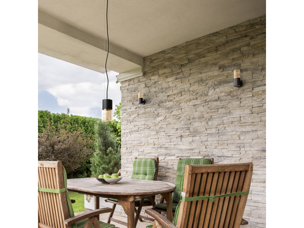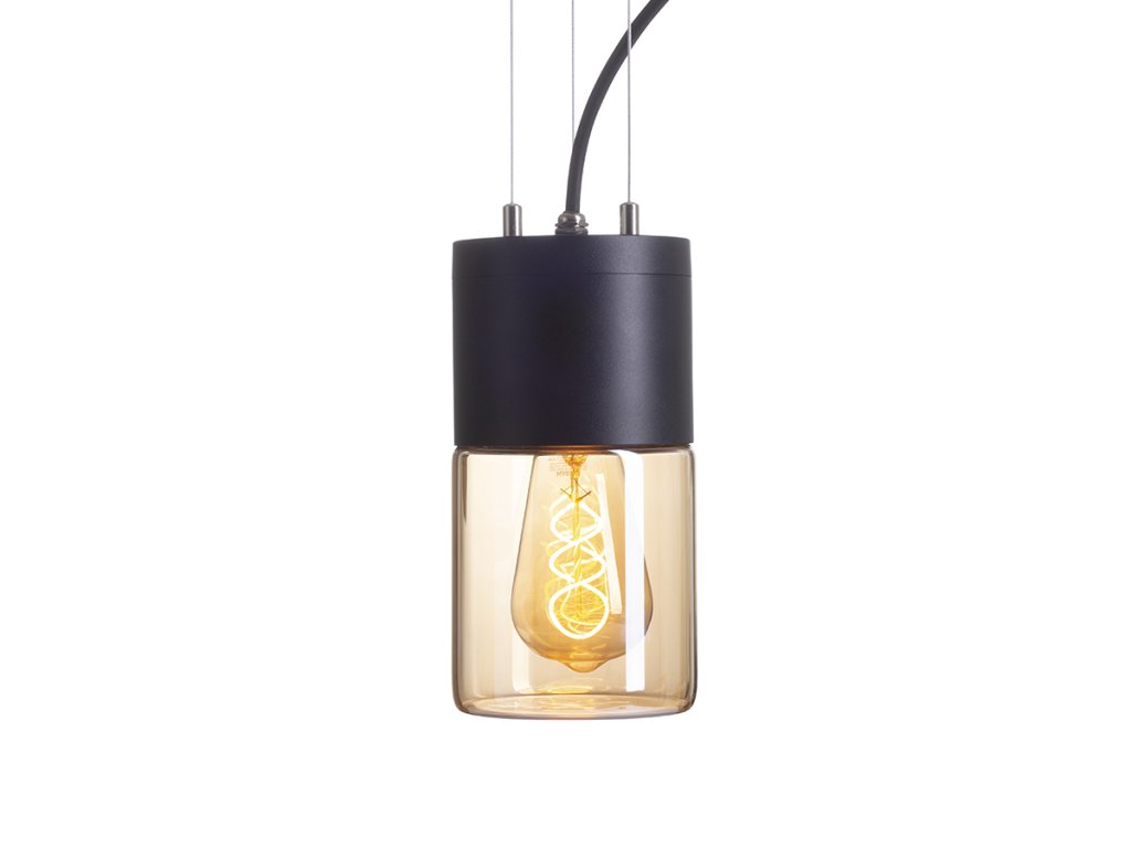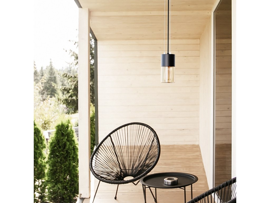 RENDL QUINN závěsná černá jantarové sklo 230V LED E27 11W IP54 R14130