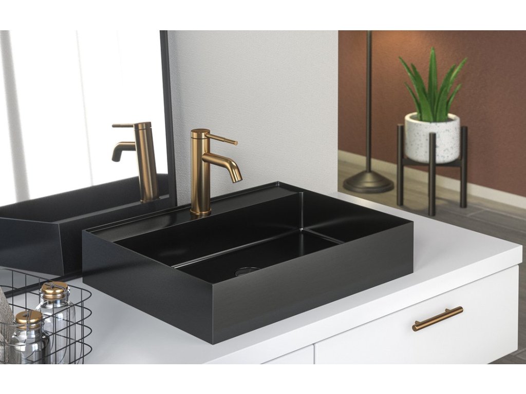 Sapho AURUM nerezové nástěnné umyvadlo, 55x42cm, včetně výpusti, gun metal AU102