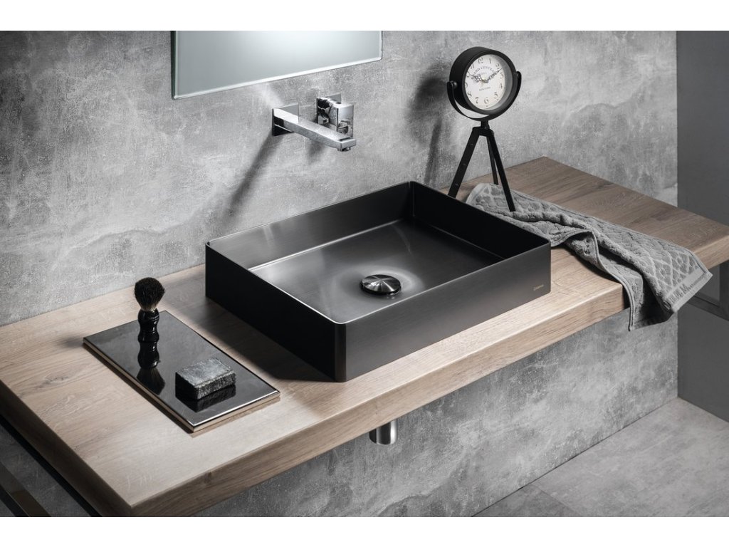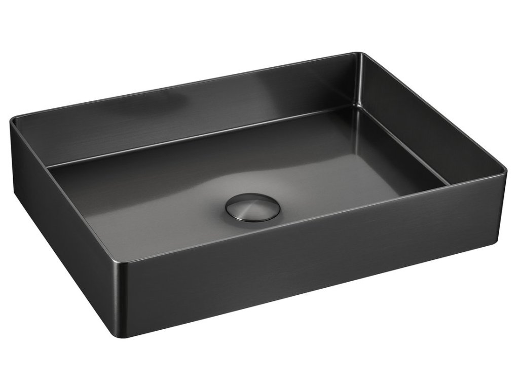 Sapho AURUM nerezové umyvadlo na desku, 50x35cm, včetně výpusti, gun metal AU103