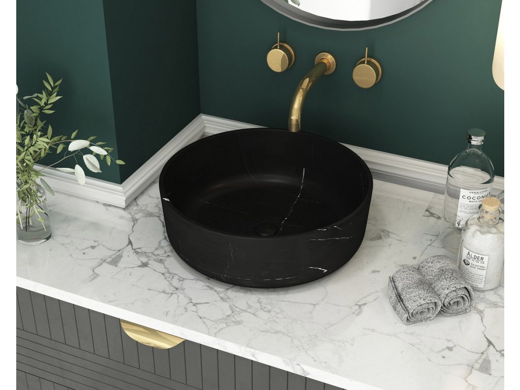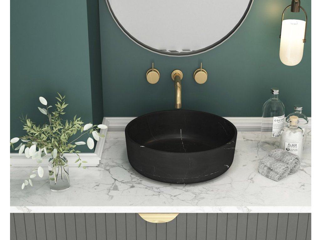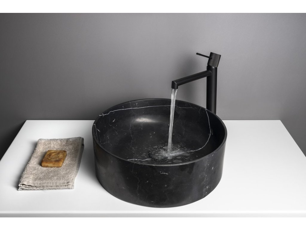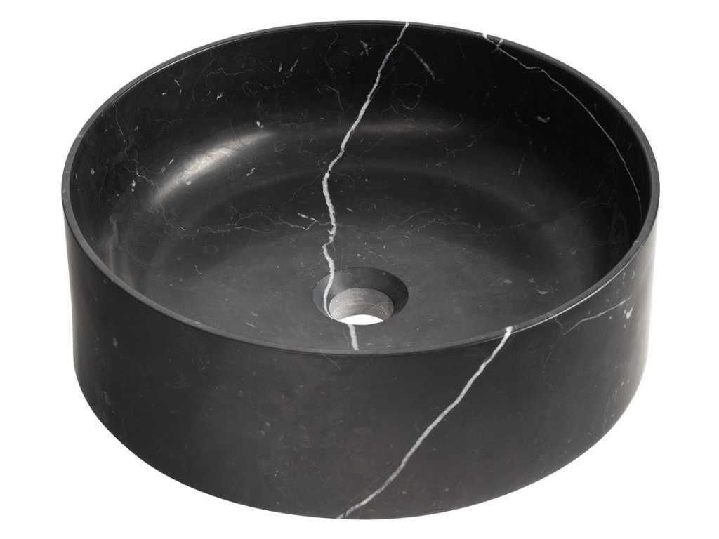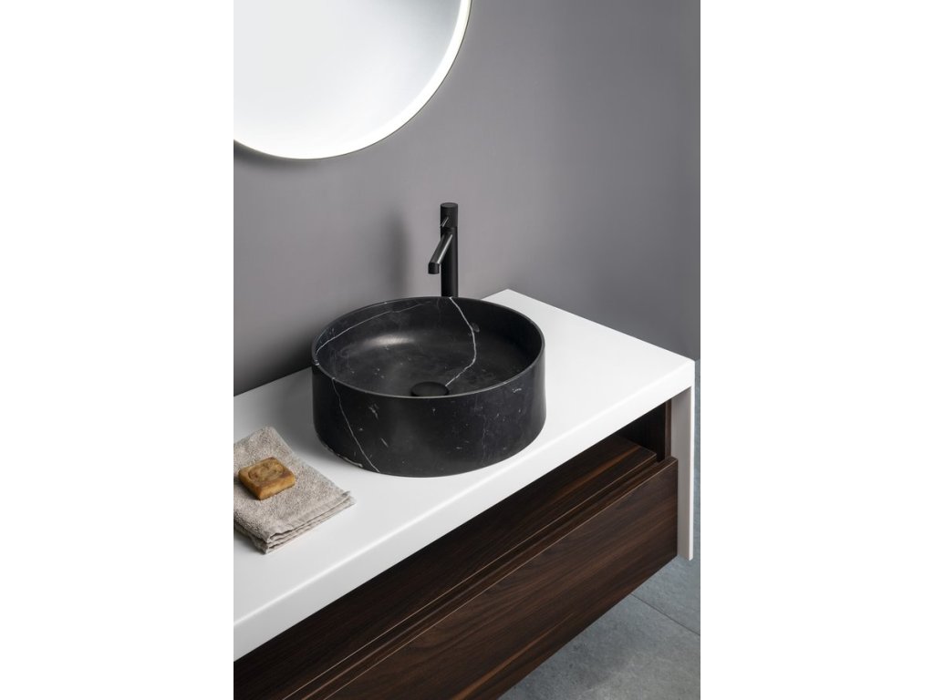 Sapho BLOK kamenné umyvadlo na desku, Ø 40cm, matný černý Marquin 2401-52