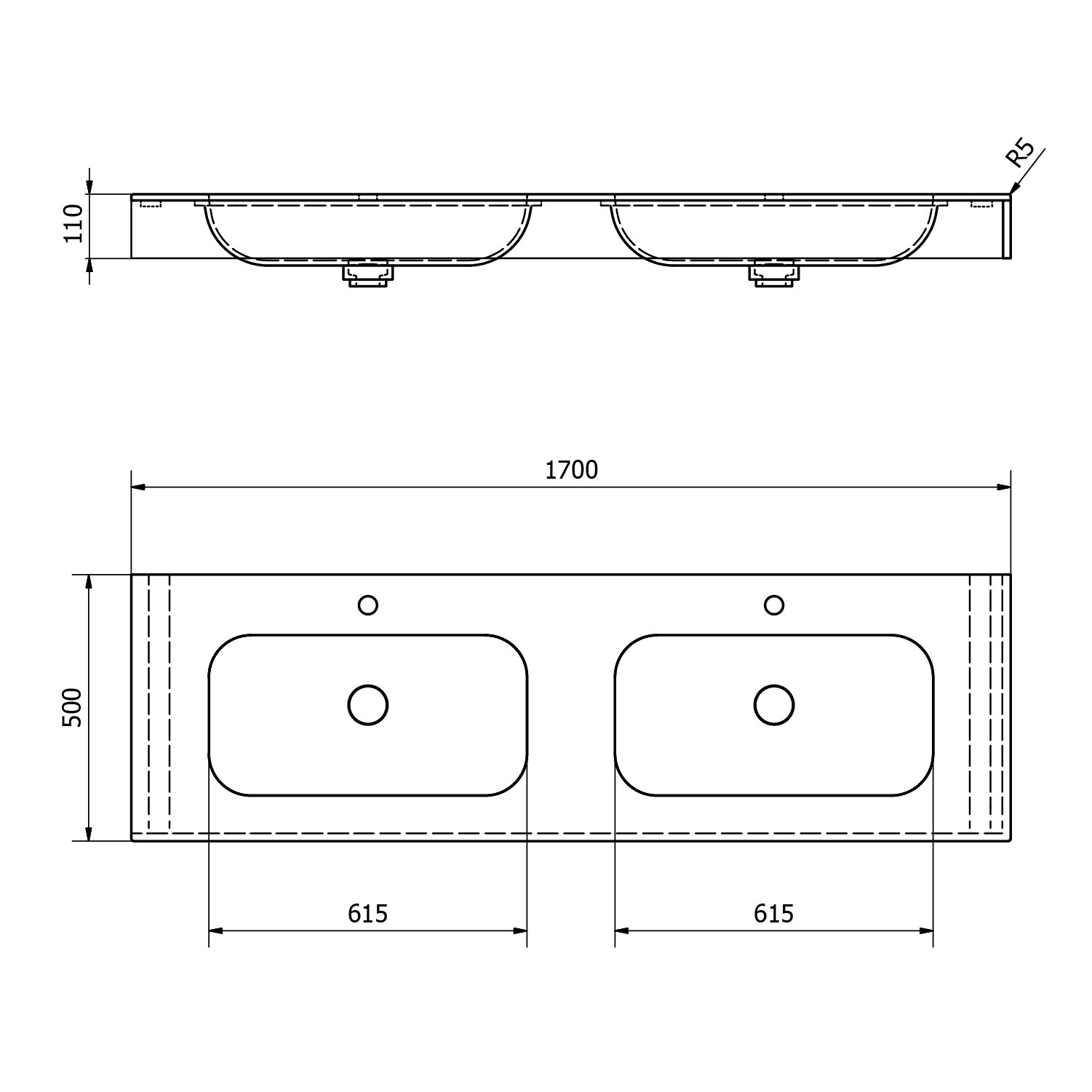 Sapho EMICO dvojumyvadlo, Rockstone, 170x50cm, límec L, bílá mat EM170-B2M-L