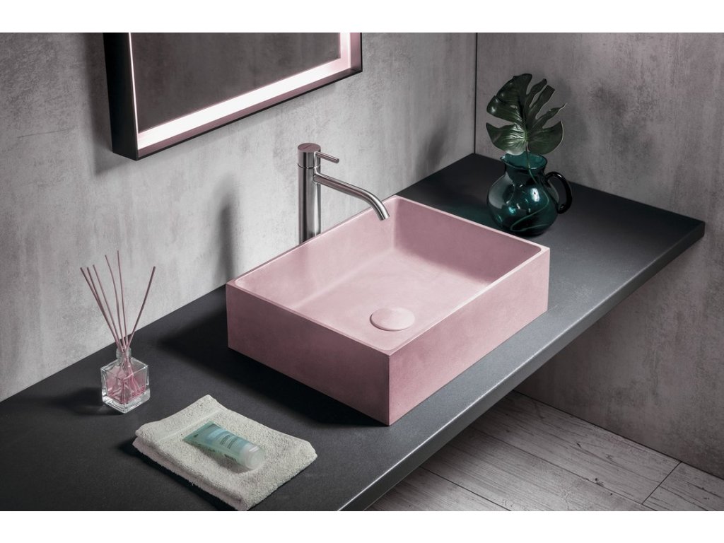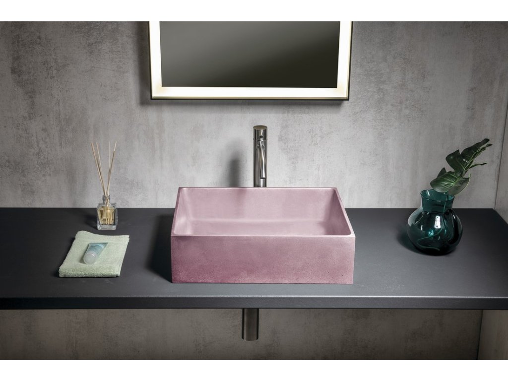 Sapho FORMIGO betonové umyvadlo na desku, 47,5x36,5cm, růžová mat FG121