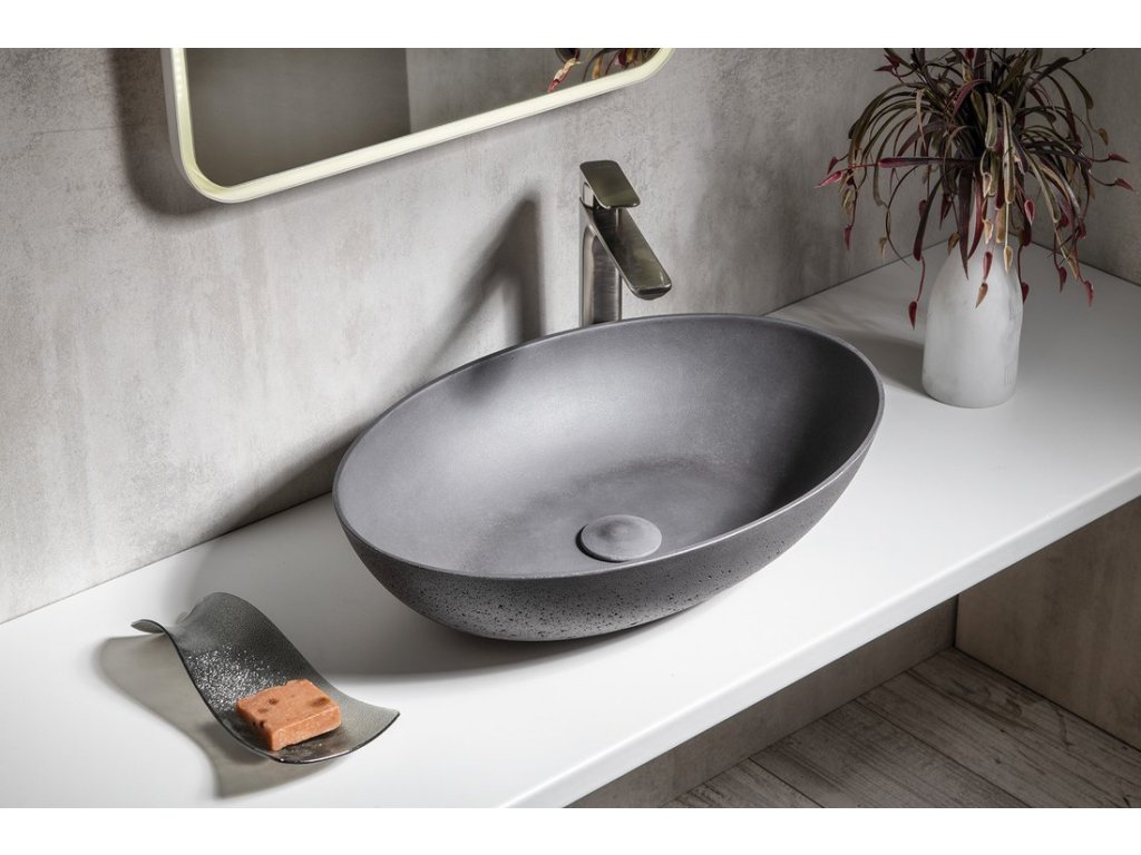 Sapho FORMIGO betonové umyvadlo na desku, 60x40cm, antracit mat FG216