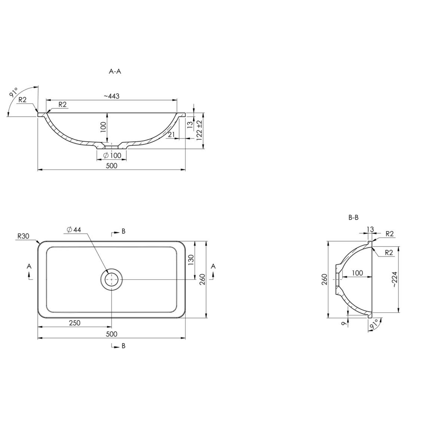 Sapho KAMA umyvadlo zápustné, litý mramor, 50x26cm, bílá 50134
