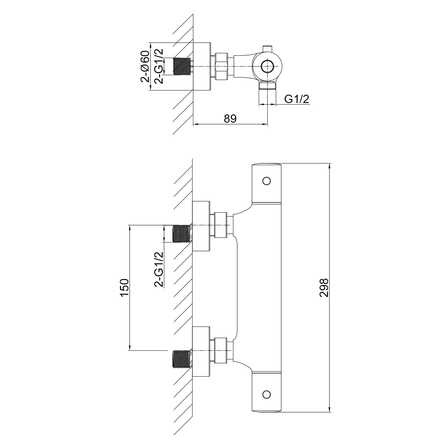 Sapho KIMURA nástěnná sprchová termostatická baterie, chrom KU211