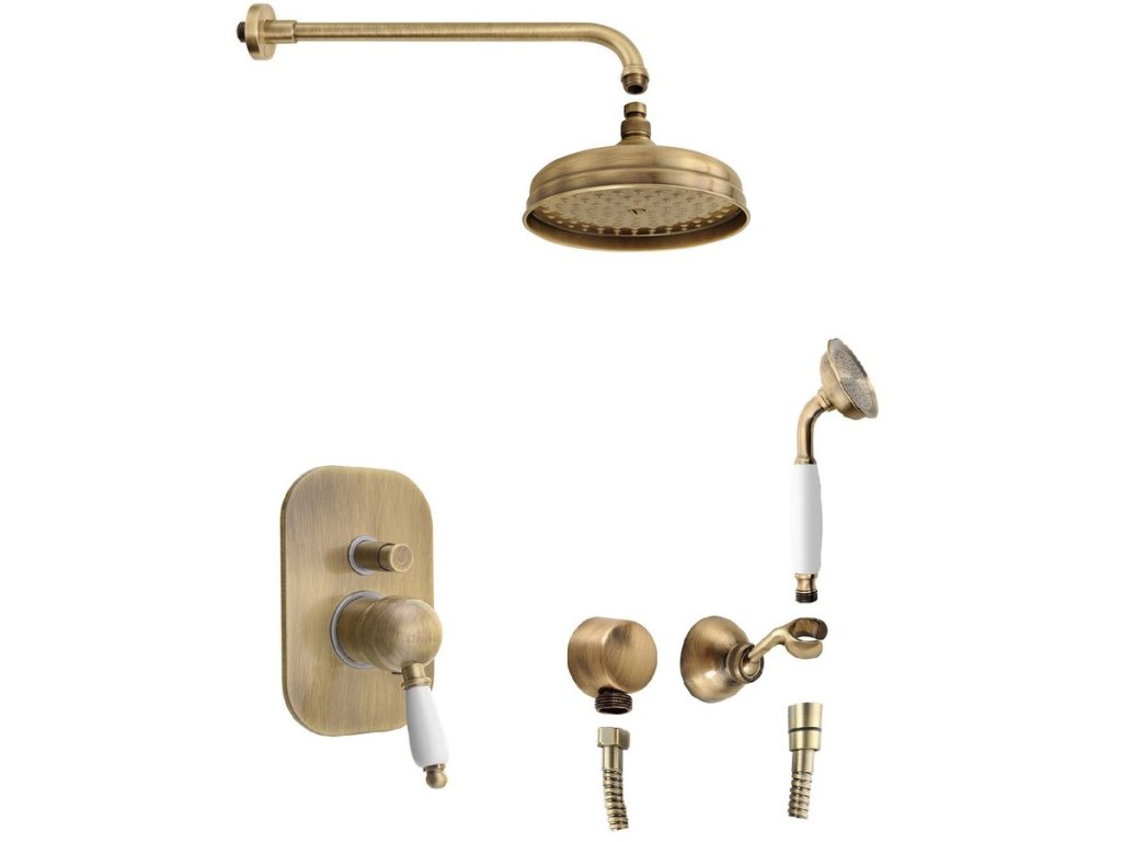 Sapho KIRKÉ WHITE podomítkový sprchový set s pákovou baterií, 2 výstupy, bílá páčka, bronz KI42BB-01