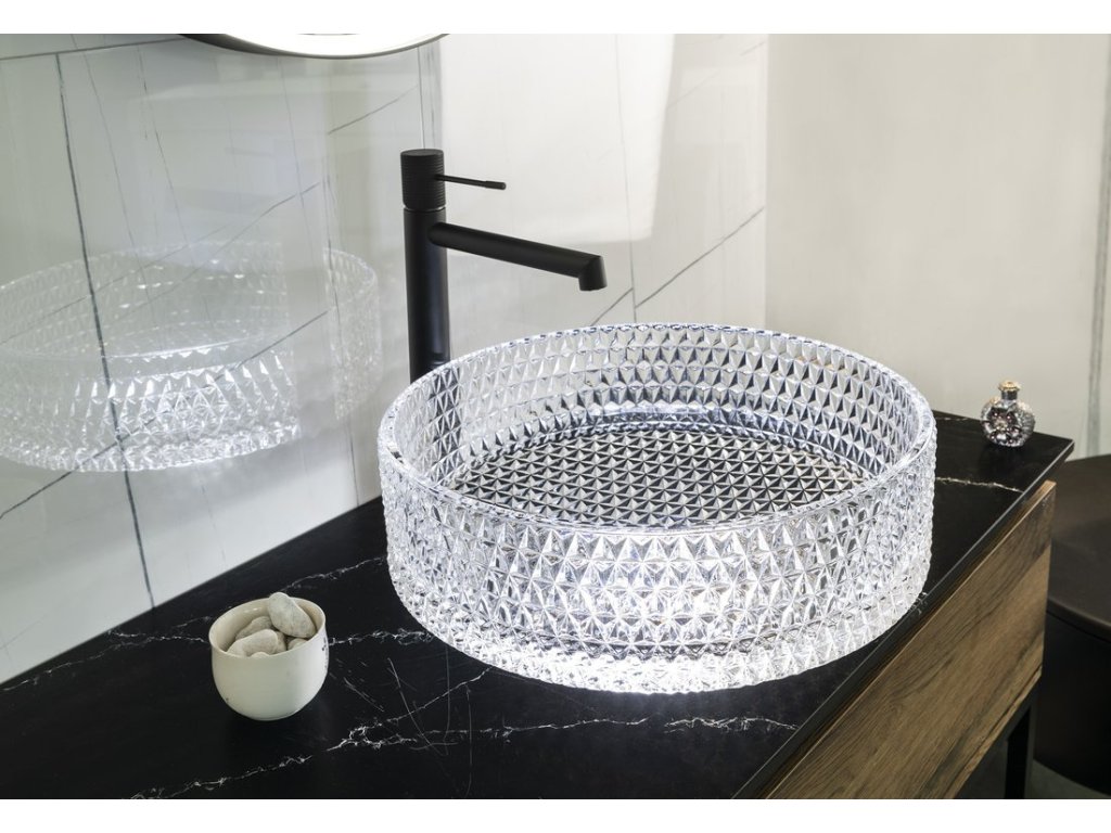 Sapho MARAGUA skleněné gravírované umyvadlo na desku Ø 39,5cm, čirá TY214CL