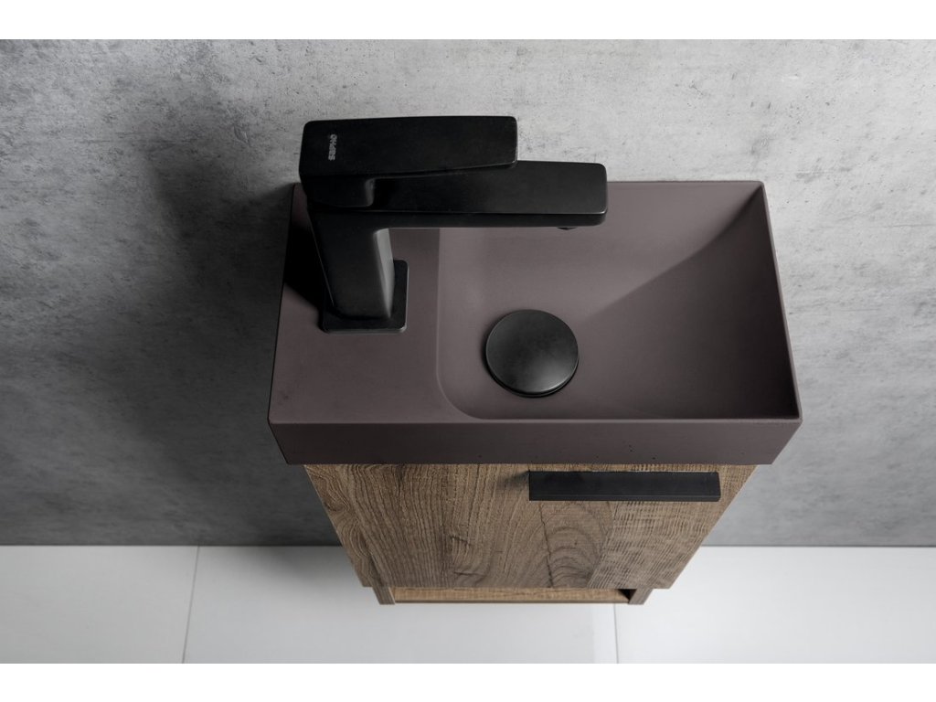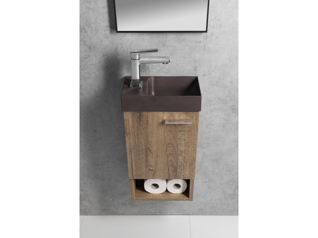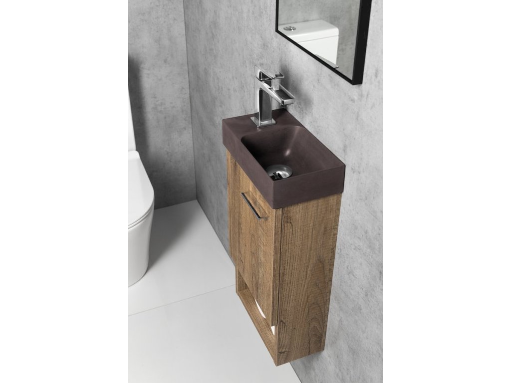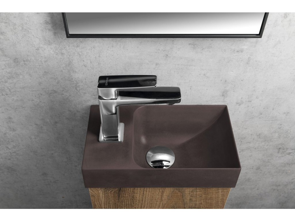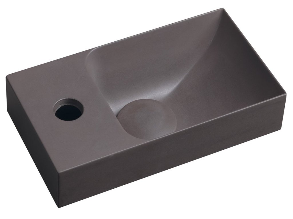 Sapho PICCOLINO betonové umývátko 30,8x17cm, baterie vlevo, tmavě hnědá mat PK30015
