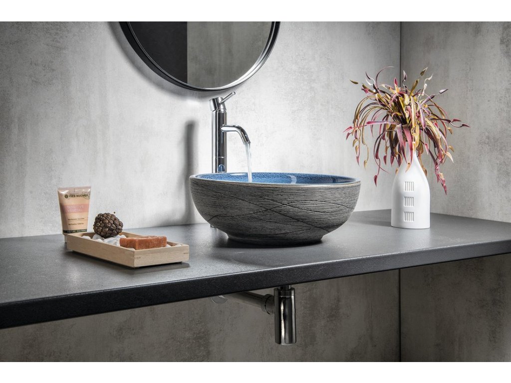 Sapho PRIORI keramické umyvadlo na desku, Ø 41 cm, modrá/šedá PI020