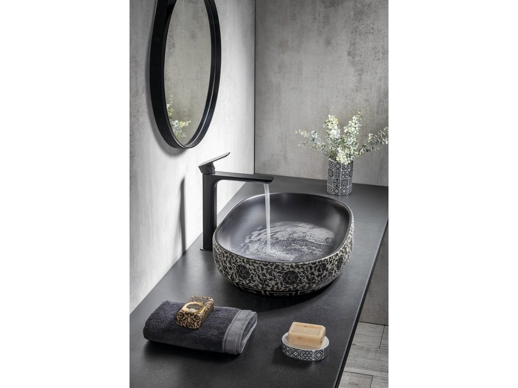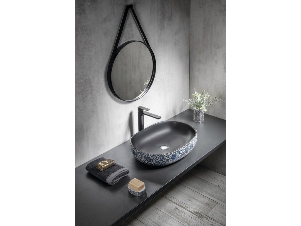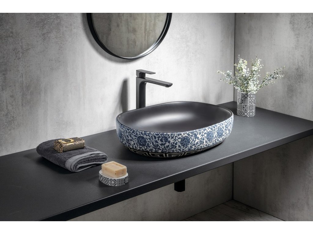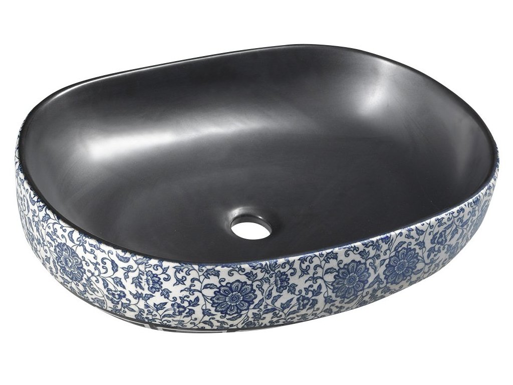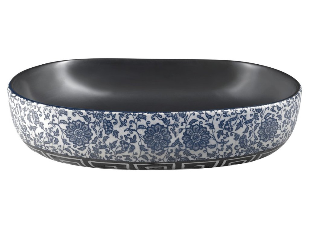 Sapho PRIORI keramické umyvadlo na desku, 60x40 cm, černá s modrým vzorem PI026