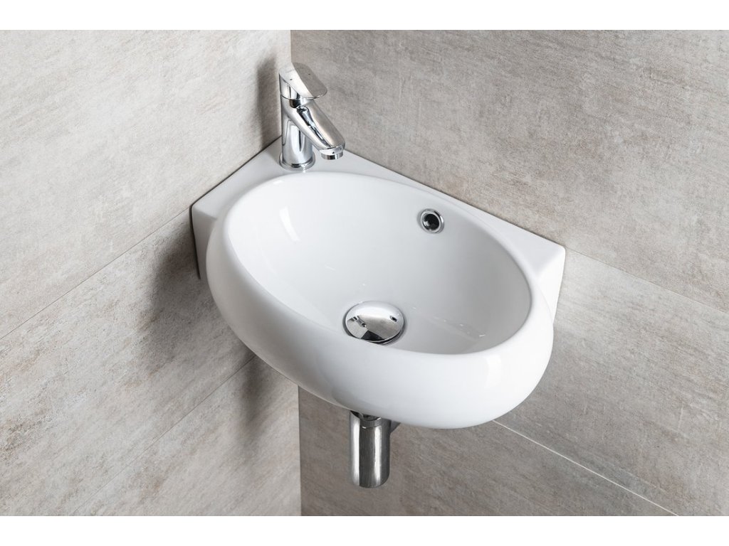 Sapho RIBERA keramické umývátko rohové 43x28,5cm, otvor pro baterii vlevo, bílá AR498