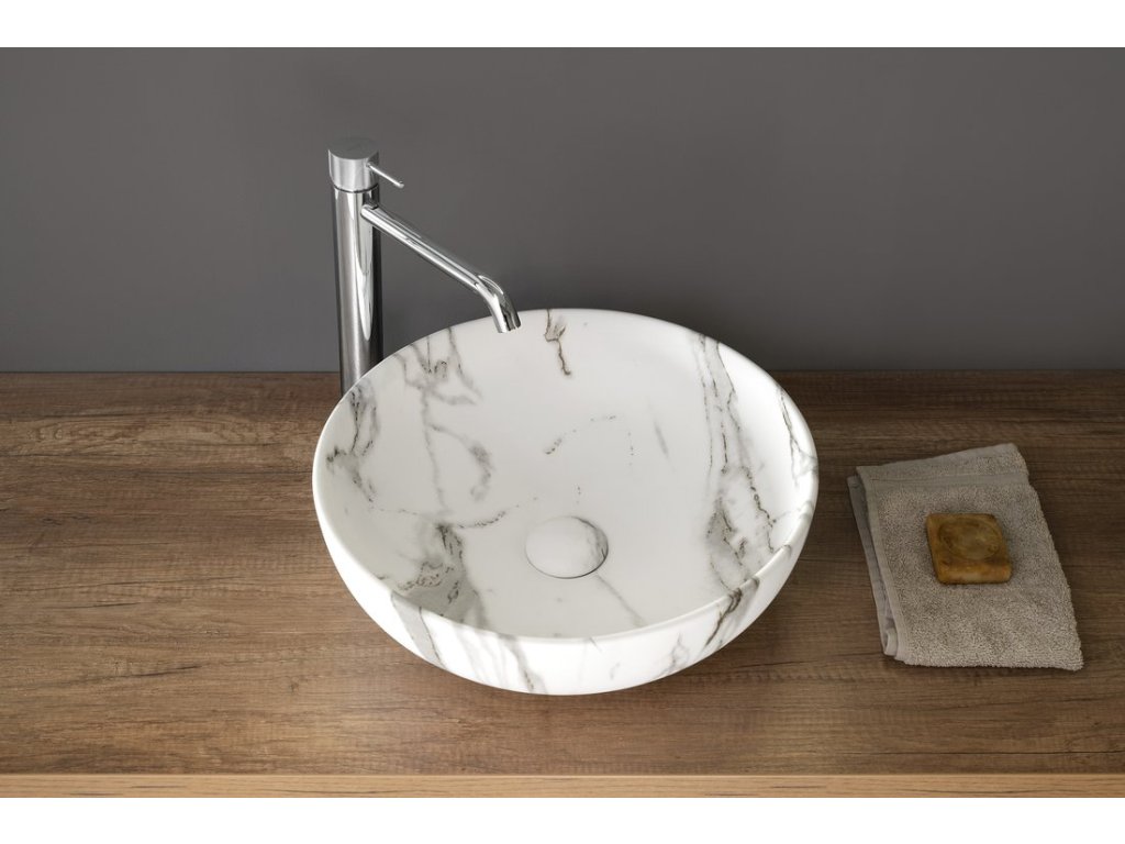 Sapho RONDANE keramické umyvadlo na desku Ø 41cm, bianco carrara AR435BC