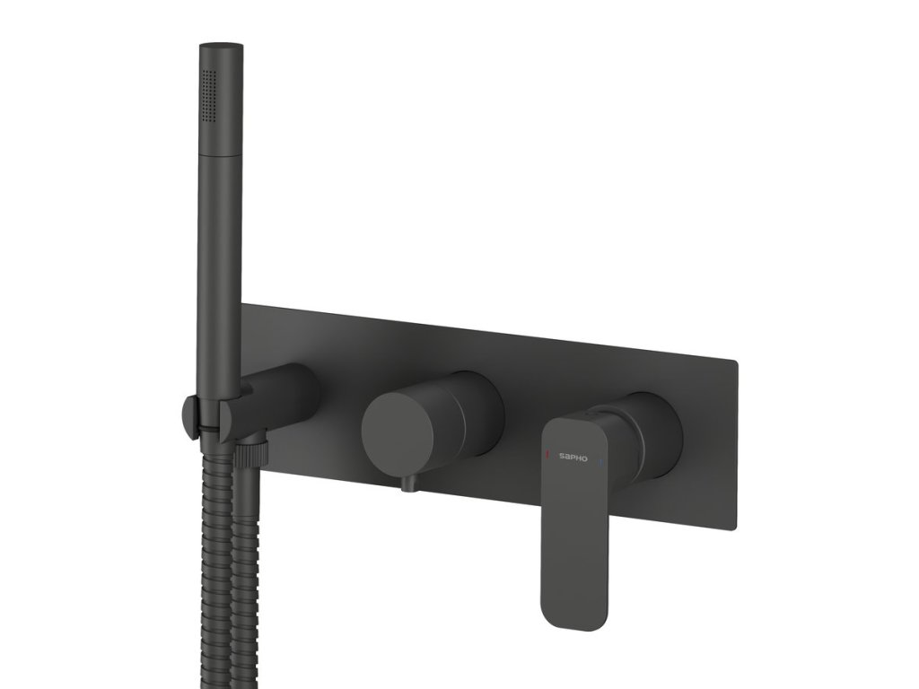 Sapho SPY podomítková sprchová/vanová baterie s ruční sprchou, 2 výstupy, černá mat PY52/15