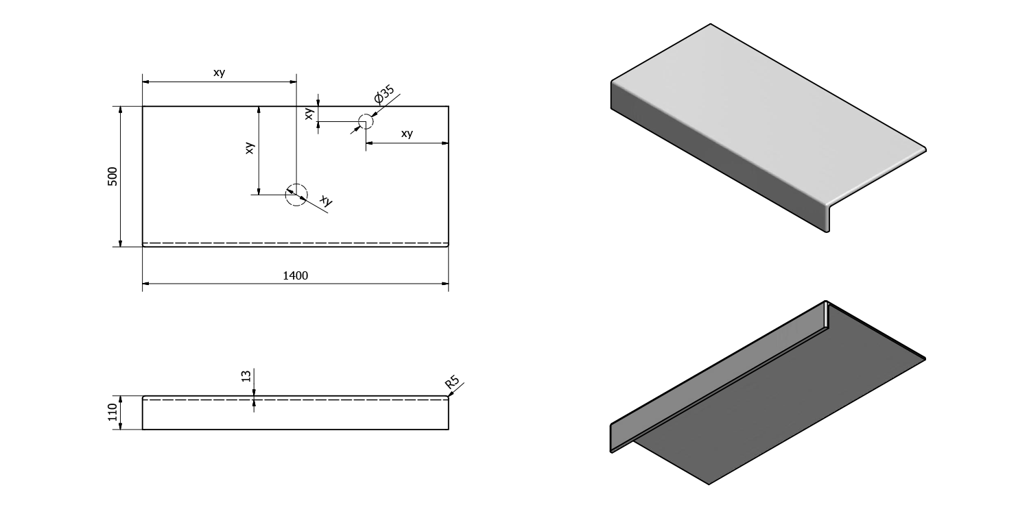 • Možnost dodání s otvory pro baterii a odpad dle výkresu (lze vrtat i v místě instalace)