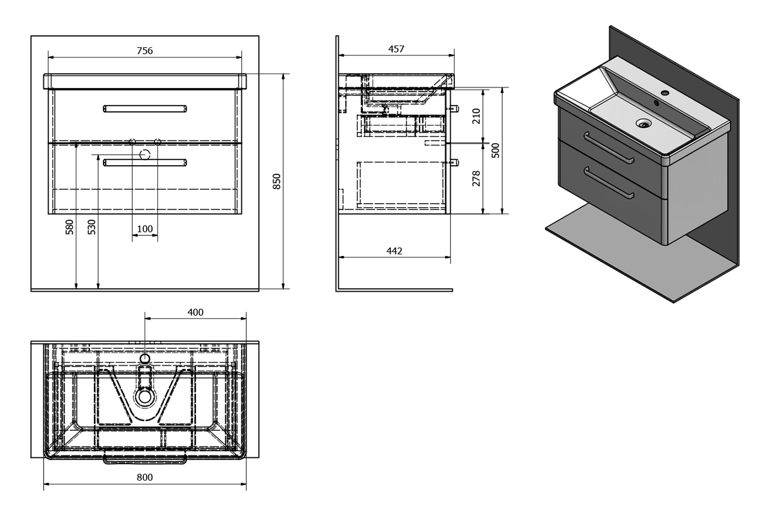 - Standardně dodáváno s úchytkami CT320, rozteč uchycení 320 mm