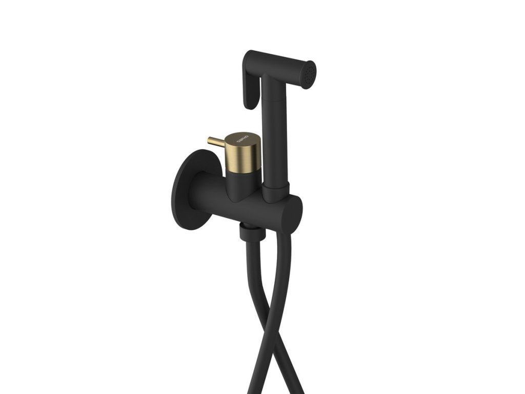Sapho ULTRAMIX podomítková bidetová baterie se Stop sprškou, kulatá, černá mat/zlato mat UT013BG
