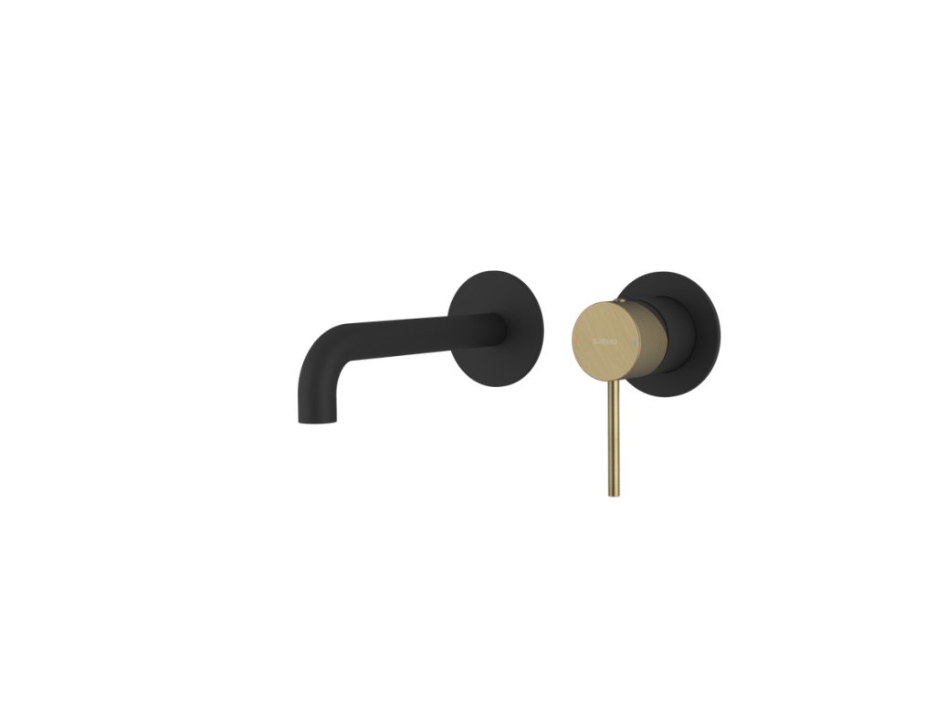 Sapho ULTRASAN podomítková dvouprvková umyvadlová baterie, hubice 20cm, černá mat/zlato mat UT018VBG