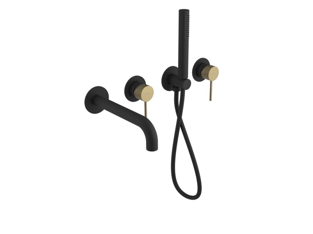 Sapho ULTRASAN podomítková vanová baterie s hubicí a ruční sprchou, 2 výstupy, černá mat/zlato mat UT093VBG