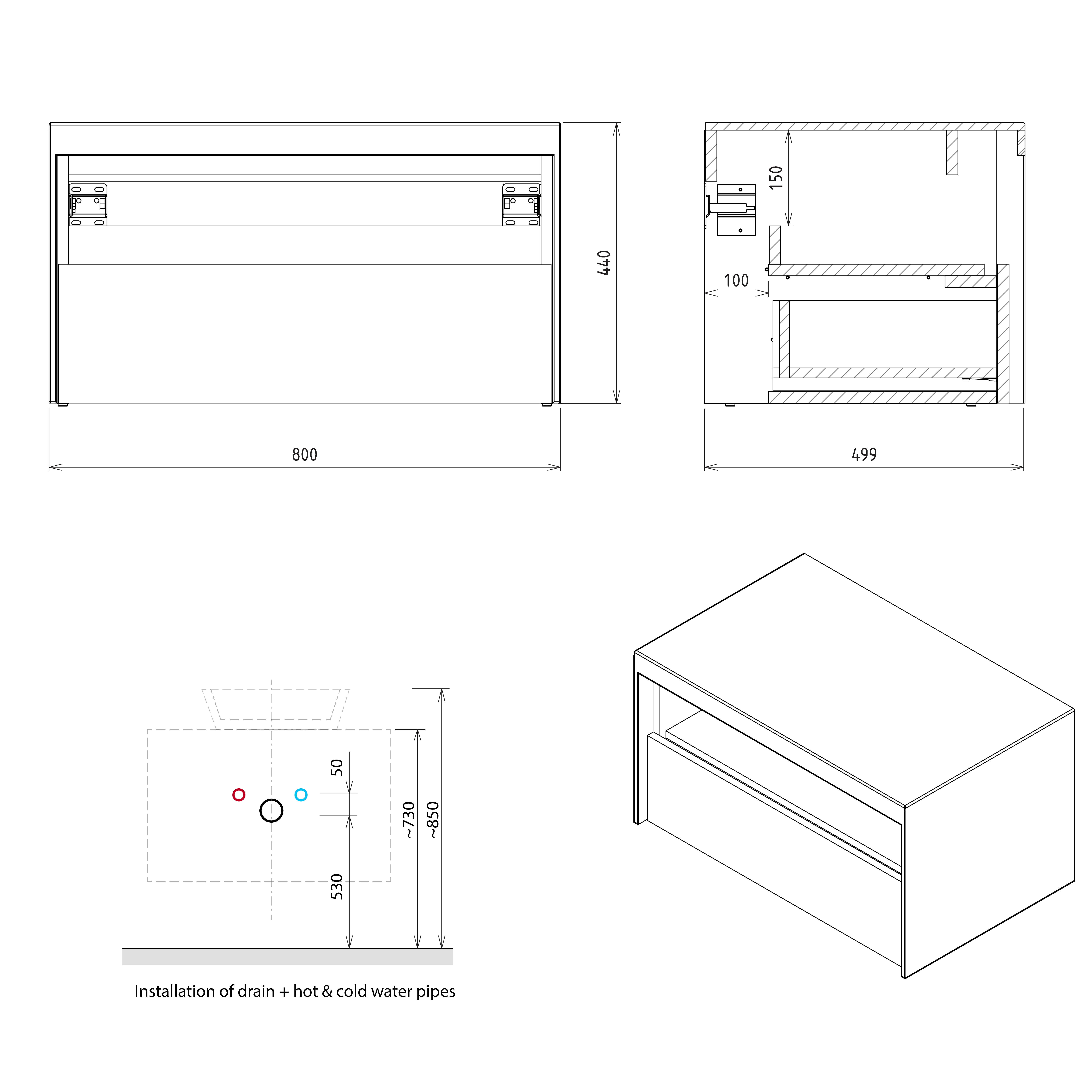 - Otvor pro baterii/výpust lze vyvrtat v místě instalace nebo dle výkresu již ve výrobě.